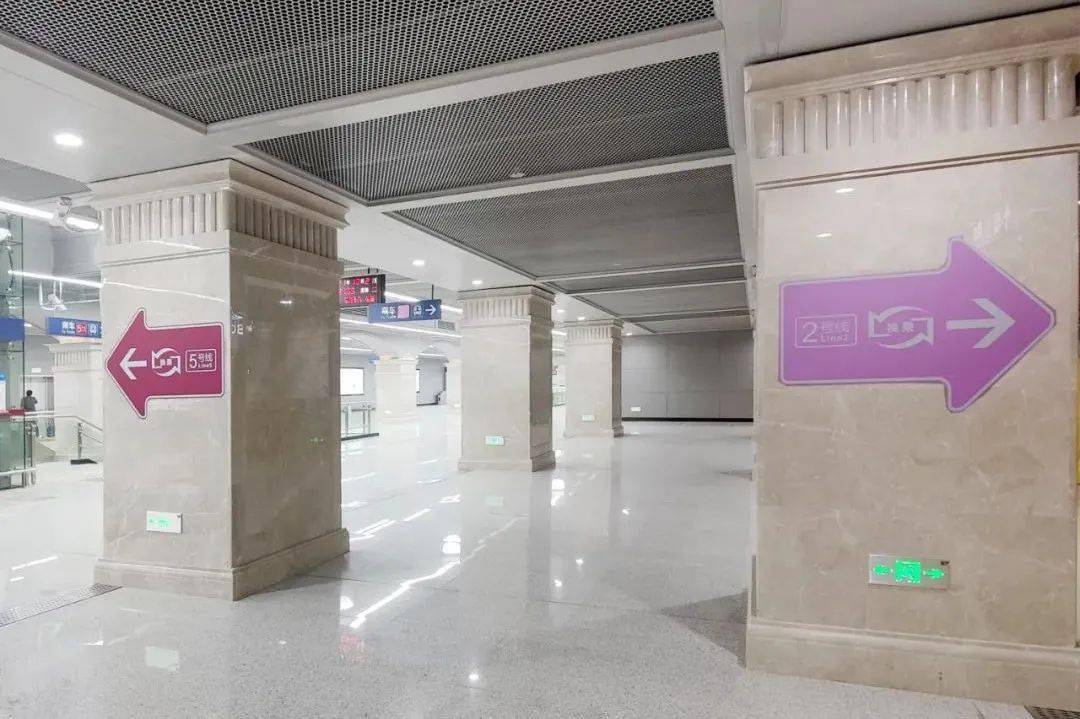 在积玉桥站,5号线和第一条过长江地铁2号线换乘。站厅中部、两端以及付费区、非付费区均已实现连通,乘客半分钟内即可实现换乘。