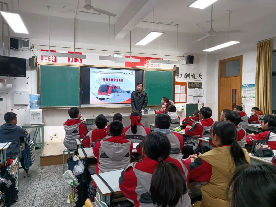 2022年1月4日下午,刘航呈同学的爸爸刘启凯先生来到初一(19)班,开展了题为地铁车辆设备概述的科普讲座。刘先生利用他的专业知识,为同学们介绍了地铁种类、地铁车辆系统、发动原理等。讲座很详实、精彩,同学们受益匪浅。