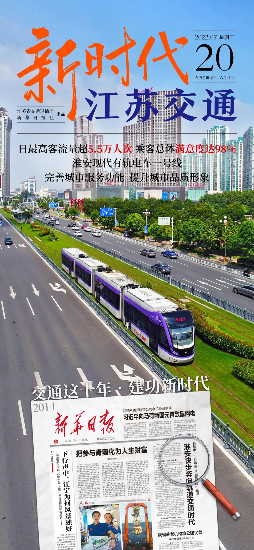 淮安现代有轨电车1号线是国内首条进入城市核心区运营的无触网现代有轨电车线路。车辆采用超级电容供电方式,在车站快速充电,列车制动时将动能转化为电能储存到超级电容中,回收利用率达85%,对国内其他城市有轨电车供电制式的选择具有很好的借鉴价值。淮安现代有轨电车开通运营以来,客流人数不断升高,城市主干线作用日益凸显。截至目前,淮安有轨电车1号线总客流近5000万人次,日最高客流量超 5.5万人次,连续多年总客流位居全国前列,乘客总体满意度达到98%,被称为是城市现代交通的主干线、便民利民的连心线、中心城市的靓丽风景线和低碳节能环保的示范线。为完善淮安东站枢纽功能、方便百姓出行、促进淮安中心城市区域协同发展,淮安正在推进有轨电车2号线前期工作。淮安有轨电车2号线项目与有轨电车1号线互联互通,线路西起古末口站,向东沿翔宇大道至铁云路,经铁云路向北下穿新长铁路后连接西十路、城东路至淮启路,沿淮启路向东到达淮安东站,全长约7.42km。