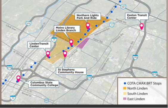 哥伦布这些城市特性在某些偏远区域尤为突出。例如,林登社区的居民面临着众多挑战,包括家庭平均收入低,缺乏产业支柱,以及婴儿高死亡率等,这些问题与缺乏良好的交通系统有关。然而,哥伦布市分布有许多工作站,其中一些离工作站距离该社区只有很近的车程,但却缺乏与该社区连接的交通系统。可谓是近在咫尺,又远在天边。哥伦布某些社区在交通系统方面的空白,导致即使该社区临近的工作站能提供包括食品储藏室等广泛的社区服务,却受困于现有的公交系统而无法直接服务该社区。
