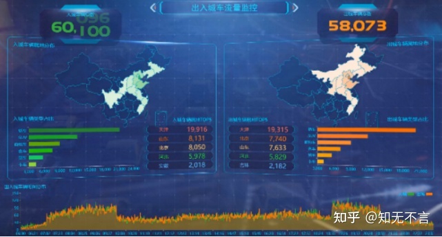 可统计当天出城和入城的车辆数量、出城和入城的卡口TOP5、出城和入城的车辆类型占比、出城和入城的车辆属地占比。