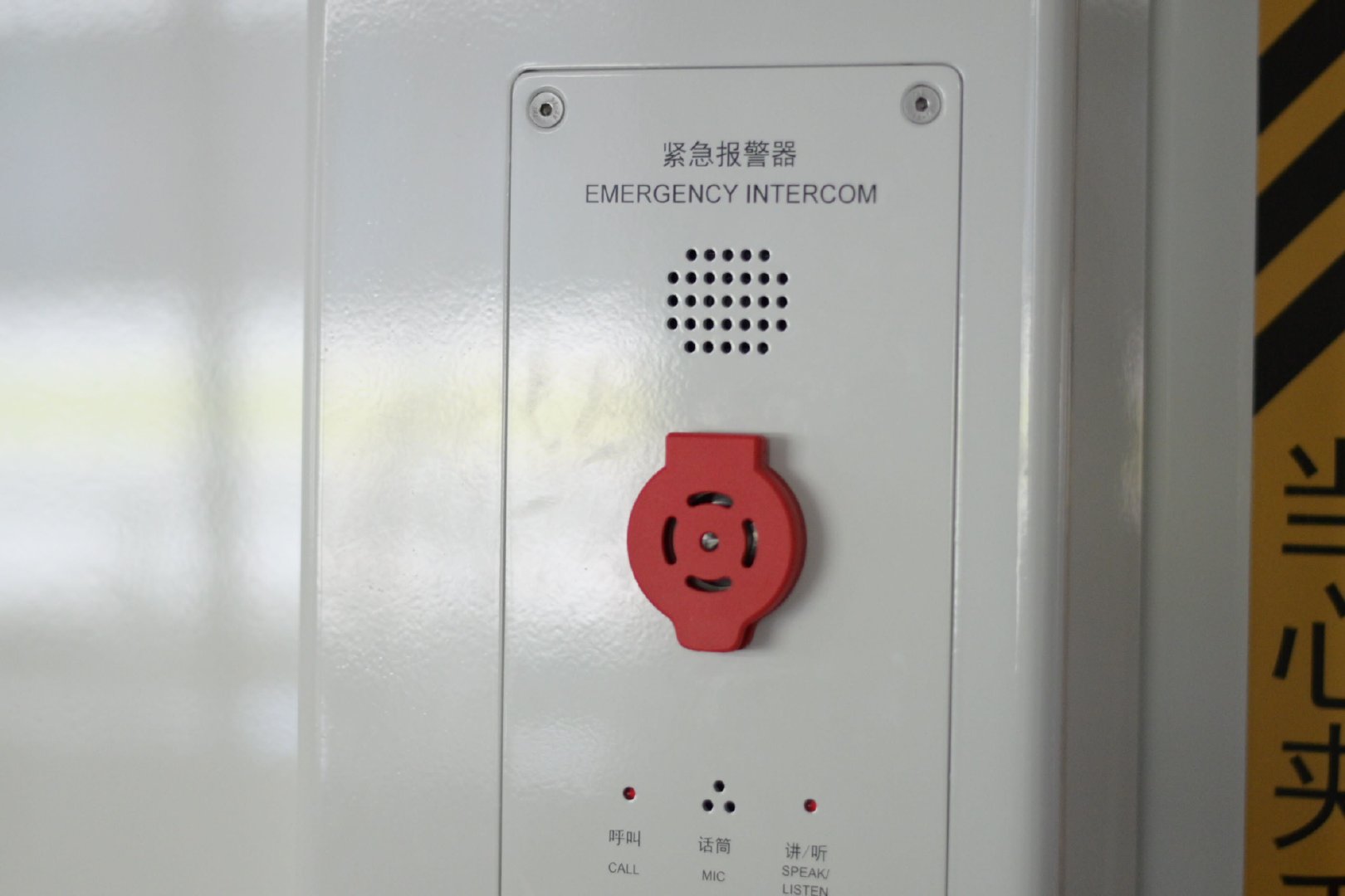 设置在地铁列车车门左侧。紧急事件下,打开保护盖按下按钮,可接通司机室通话。