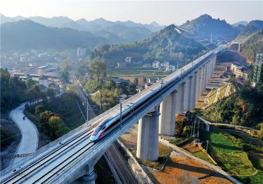 乡村振兴线:张吉怀高铁地跨怀化、湘西州、张家界市三市州,7个县市区,结束了湖南湘西州不通高铁的历史,让沿线十八洞村这样的偏僻乡村也走进高铁时代,带动湘西的冰糖橙、茶叶、猕猴桃等特色农产品搭上高铁快车,加快区域乡村振兴的速度。在如今的十八洞村,一首新山歌在老百姓中传唱:“苗家住在金银窝,境内自然资源多。通水通电又通路,户户过上新生活。”