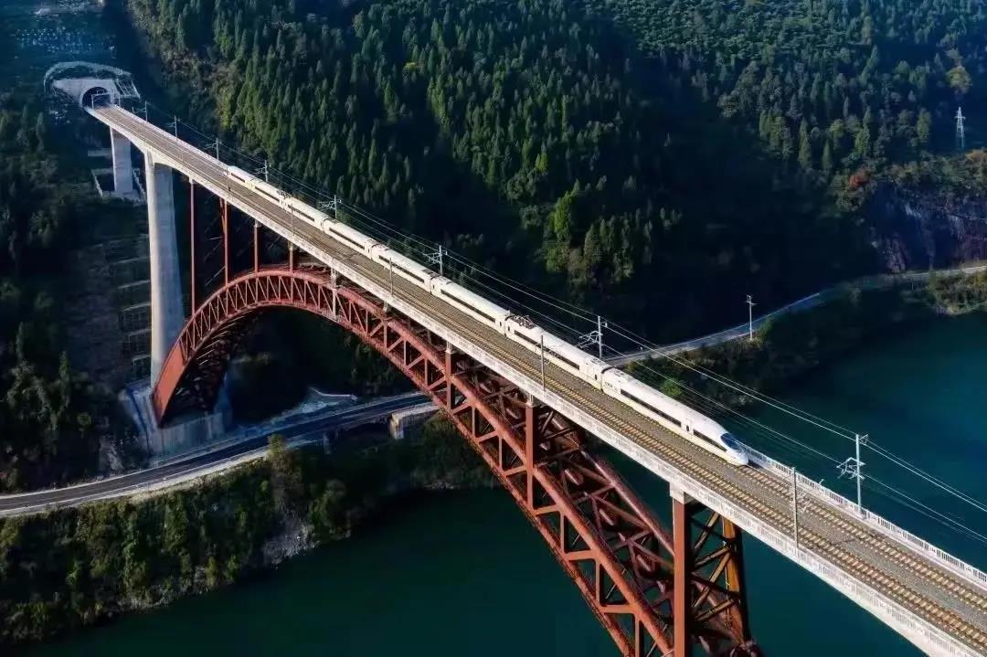 云端高铁线:据统计,张吉怀高铁桥梁和隧道达到280座,桥隧占全程的比例高达90%以上,平地上的线路不到10%。全线的车站、隧道和桥梁基本都建在大山间、悬崖边、田野上,因此被称为“云端高铁线”。
