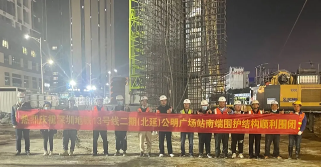 12月23日,地铁13号线北延公明广场站南端围护结构顺利围闭,吹响了车站主体结构施工及盾构始发按期推进施工的冲锋号角