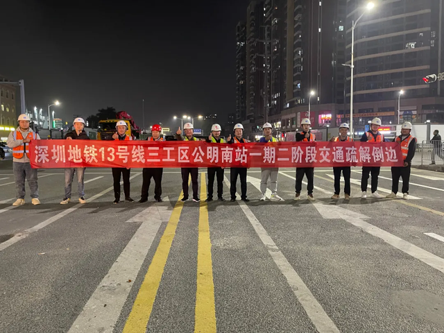 12月31日,地铁13号线北延公明南站一阶段二期交通疏解顺利倒边,为下阶段车站围护结构及附属结构施工提供了有利条件。