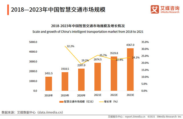 《艾媒咨询|2021年中国智慧交通行业发展分析报告》显示,2018年智慧交通行业市场规模为1451.5亿元,2019年智慧交通行业市场规模为1918.5亿元,2020年为2287.0亿元,同比增长19.2%,预计2023年中国智慧交通市场规模将突破4000亿元。 据21世纪经济报道统计,截至2021年10月,全球智慧交通第一大技术来源国为中国,其智慧交通专利申请量达到4945项,占全球智慧交通专利总申请量的82.64%,约为第二名美国专利总量的十倍。 在数字新基建逐步落地过程中,智慧交通也成为热门的投资领域,过亿大单频频出现。有数据显示,过去一年,在我国智慧交通的各细分赛道中,城市交通、智慧高速和智慧轨交等均为百亿级规模,年增速在10%以上。 目前中国智慧交通不管是技术还是政策等条件均基本成熟,智慧交通建设在部分城市已有了初步成果,未来随着行业向下沉市场不断推进、自动驾驶等技术不断突破,智慧交通行业整体将迎来一波较快的增长,也有望成为中国新的经济增长点。 智慧城轨的建设,称得上是新基建最具代表性的领域:城轨建设属于典型的老基建范畴,而智慧城轨建设强调的则是数字技术与城轨交通各系统和各类服务的集成,属于新基建中的融合基础设施部分。2020年年初《中国城市轨道交通智慧城轨发展纲要》的正式出台,更是为智慧城轨建设描绘出1-8-1-1的宏伟蓝图,由此,城市轨道交通开始加速向网络化、自动化、智慧化发展。 我国《十四五规划和2035年远景目标纲要草案》也提出,十四五期间我国城市轨道交通运营里程数将新增3000公里,并预计十四五累计客运量将突破千亿人次,有望达到1292亿人次。
