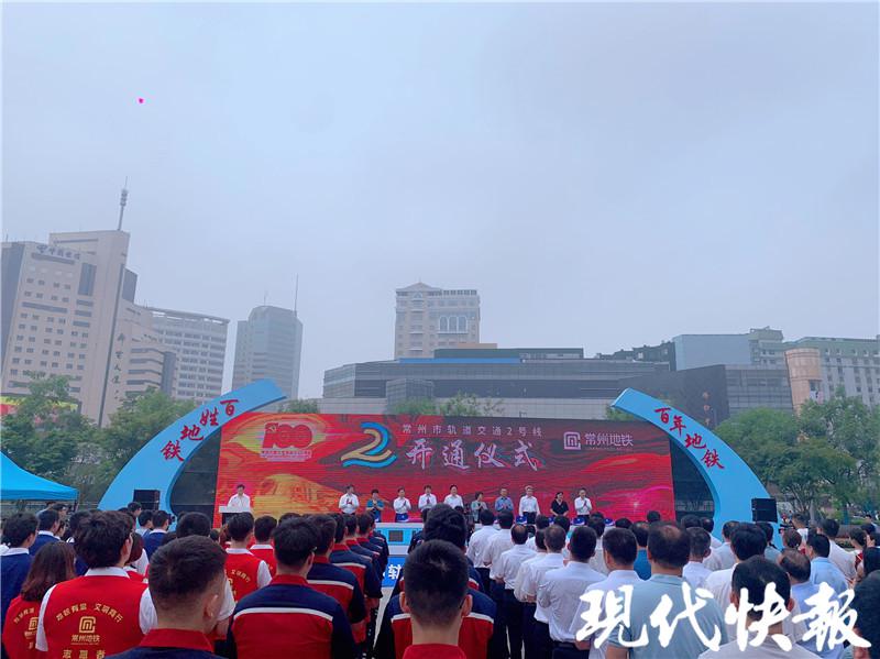 现代快报讯 (通讯员 沈琳 记者 张敏)6 月 28 日上午,常州轨道交通 2 号线开通仪式在文化宫广场举行。常州市委书记陈金虎宣布,常州轨道交通 2 号线开通,常州市民由 " 地铁时代 " 迈入 " 换乘时代 "。