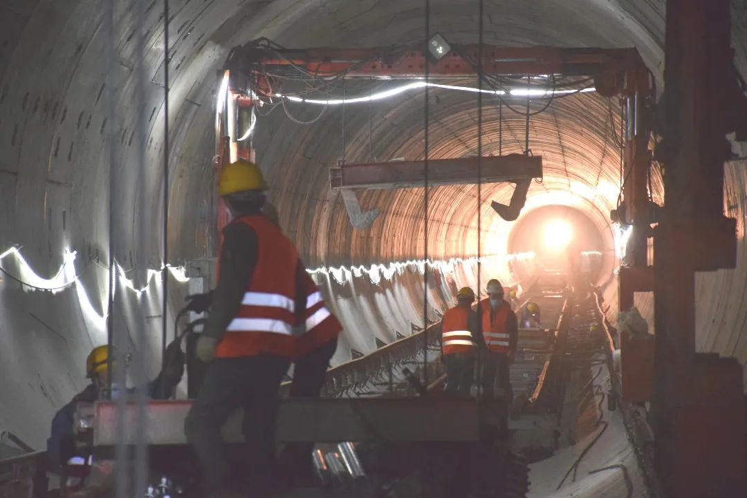 至此,地铁10号线一期工程实现全线短轨贯通,为后续的钢轨焊接及全线长轨贯通奠定基础。